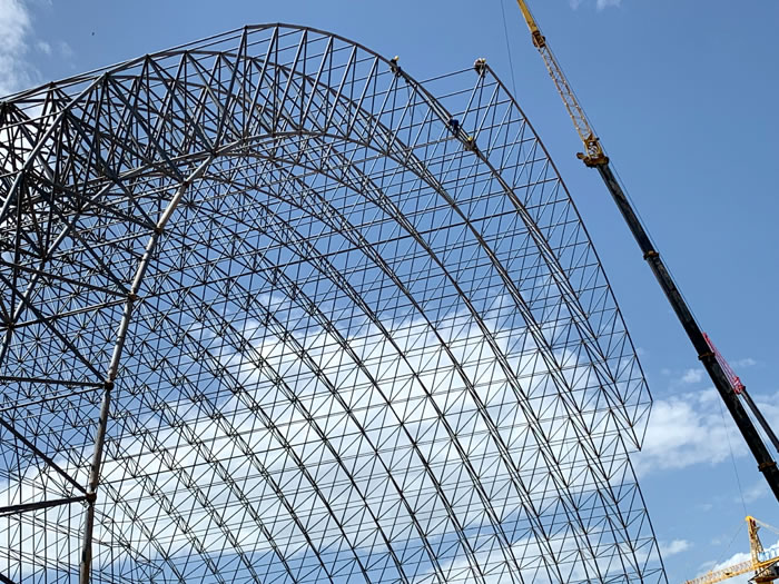 (2)网架加工前应对现场尺寸进行复测,确认无误后方可进行加工、安装;网架制作、运输、安装应遵守《空间网格结构技术规程》JGJ7-2010、《钢网架汝州螺栓球节点》JG/T 10-2009、《钢网架汝州螺栓球节点用高强度螺栓》 GB/T 16939-2016、《汝州钢结构汝州工程汝州施工规范》 GB50755-2012、《汝州钢结构汝州工程施工质量验收标准》 GB50205-2020。
